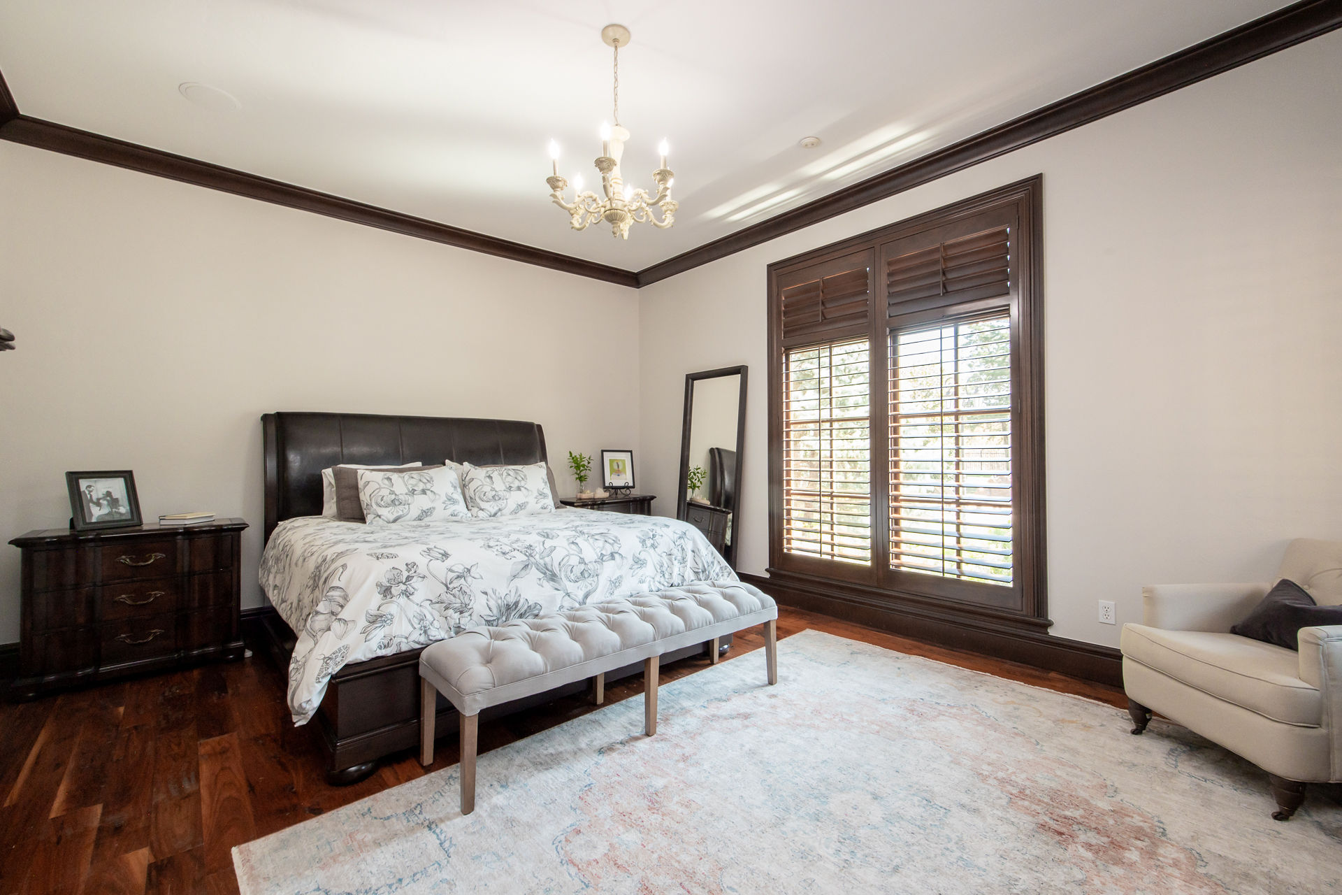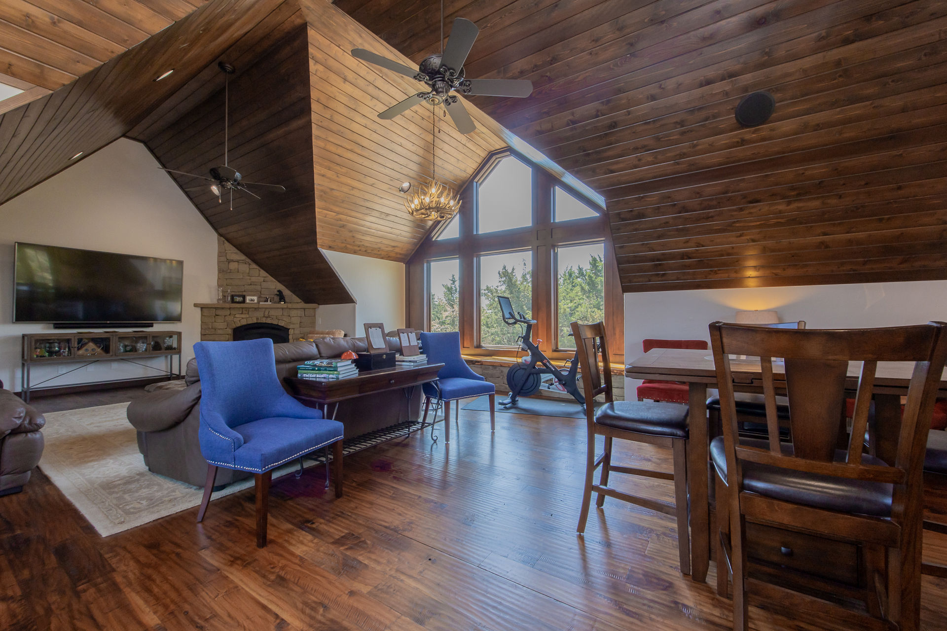 Expansive estate situated on a beautiful wooded lot w/in the gated Lakeside of Oakdale. An English Tudor flare parading character inside & out. A Brent Gibson design, the architectural ingenuity enhanced by spacious rooms, vaulted ceilings, skillful trim package, coupled w/a soothing & timeless color palette elevates this property’s offerings. Main level living features vaulted beamed ceiling w/stacked stone fireplace, rich hickory honed hardwoods, & picturesque windows. Kitchen offers amenities for all the culinary arts; large island w/seating, Thermador appliances, easy access to outdoor living=ideal for entertaining. Quite a view of the Caviness pool from living as well as kitchen; massive boulder waterfall cascading adds another stunning aesthetic. The outdoor living & relaxation spaces are amazing areas to retreat! Bedrooms are all generously sized w/areas for seating. Upper E living area has hickory hardwoods, fireplace, wall of windows, closet, wood planked vaulted ceiling; it’s quite the “bonus” room.